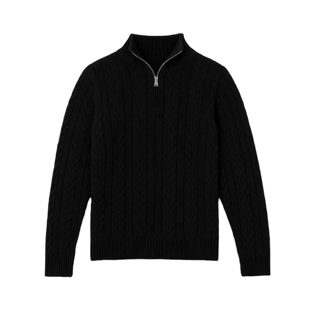 Black Quarter-Zip Cable Knit Sweater